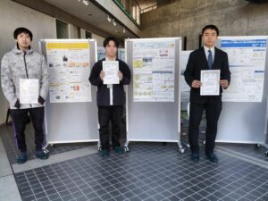 第35回材料科学に関する若手フォーラムにおいて優秀発表賞を受賞 2026年2月5日(木)に船橋キャンパス14号館において開催された先端材料科学センター主催の第35回材料科学に関する若手フォーラムにおいて、電子工学専攻の以下の3名が優秀発表賞を受賞しました。2分半のショートプレゼンテーションとポスター発表の中で、行っている研究をアピールし、教員や講師、学生と活発に議論をしていました。おめでとうございます。ますますのご活躍をお祈りします。 電子工学専攻 2年 有泉龍馬 「高電位静電気力顕微鏡を用いた表面電位計測における外乱電界の抑制をする静電シールドの開発」 電子工学専攻 1年 片岡誠治 「交差構造によるパルス電流誘起磁場を用いたGdFeCo/Pt磁性細線中への局所磁区形成」 電子工学専攻 1年 塩谷怜生 「低温酸化によって成膜したSiO2膜の長期信頼性に対する検討」 ****